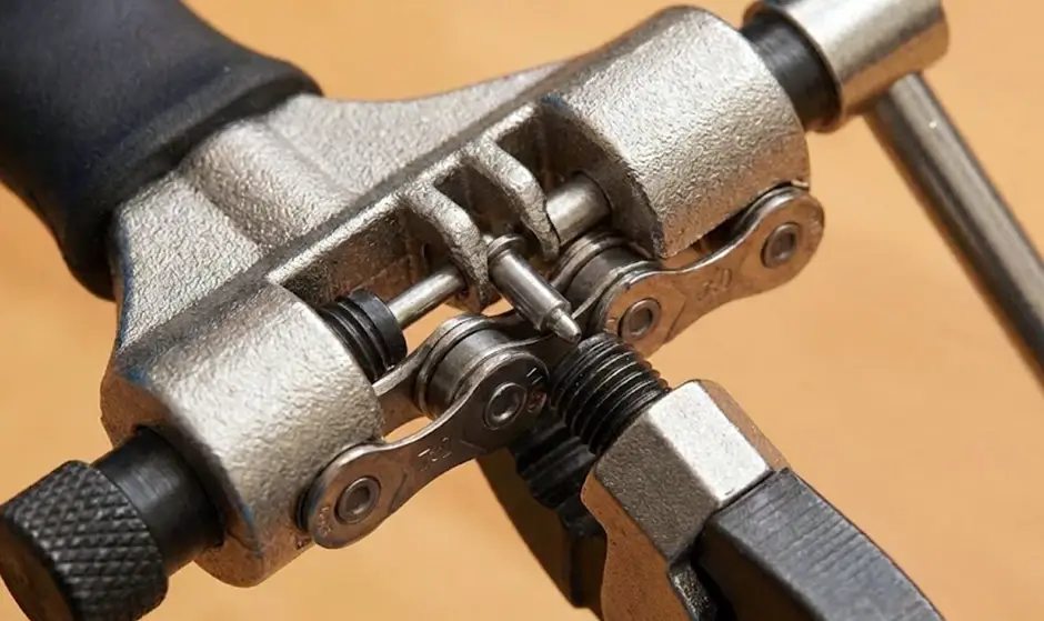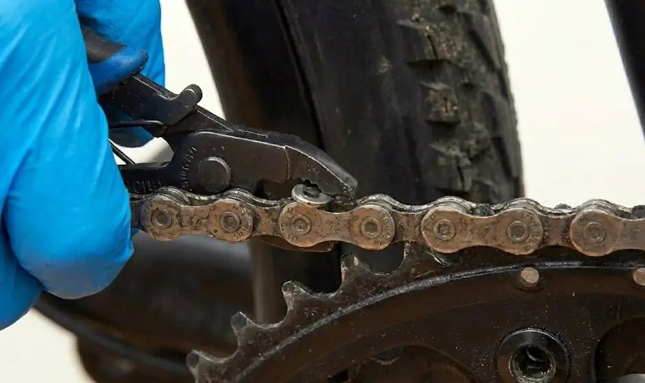 If your chain does not have a master link (common on older Shimano chains), use your chain breaker tool.