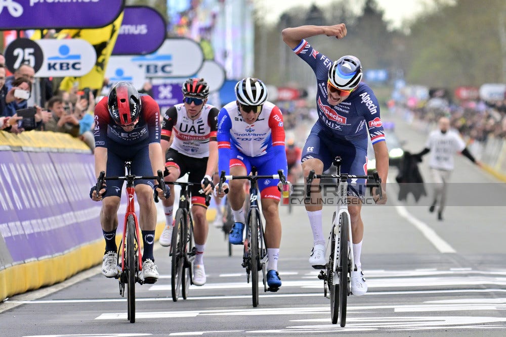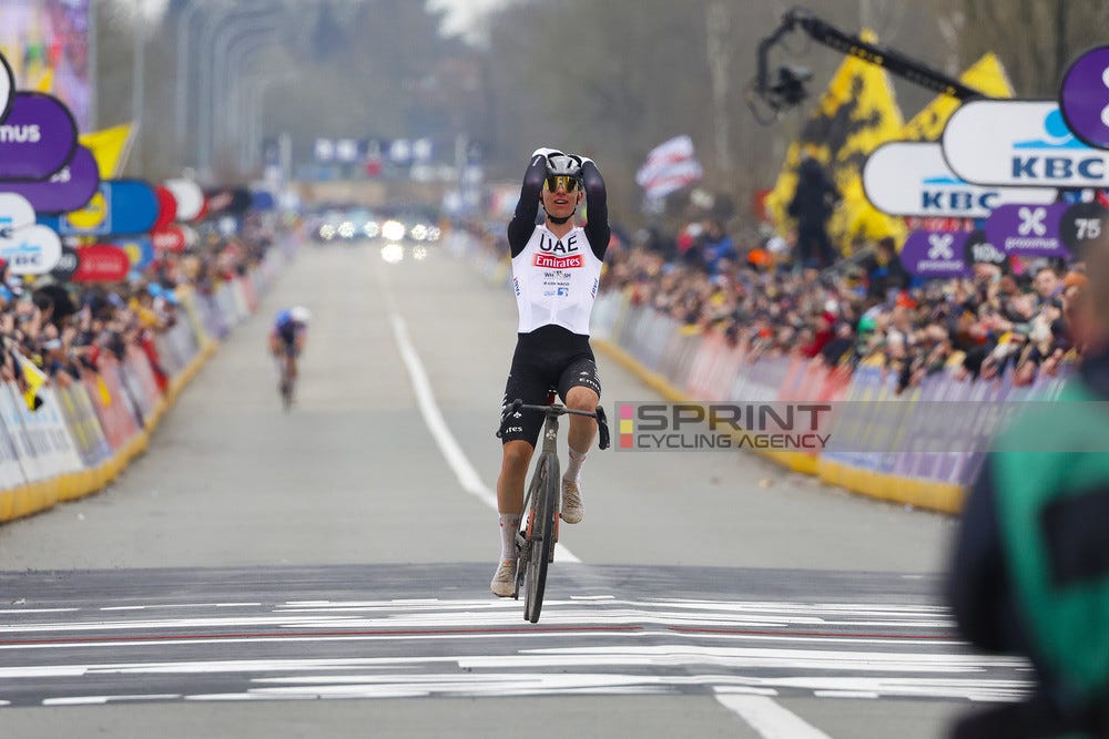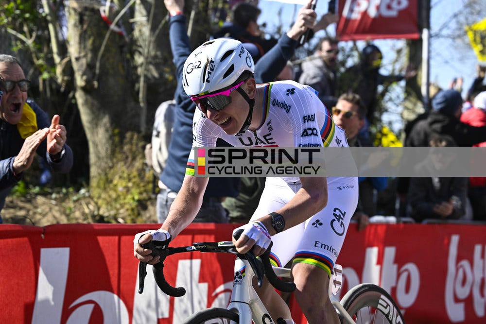 Many iconic rivalries have been created at this race. We all remember the battles between Fabian Cancellara and Tom Boonen in the early 2010s or the nail biting finish between Mathieu Van der Poel and Wout van Aert in 2020. However, next to the superstars, some underdogs have also succeeded at this race in the past, Kasper Asgreen and Alberto Bettiol being the most recent ones. But as many races nowadays, this race has also been dominated by one rider in the recent years. Of course, I’m talking about Tadej Pogacar.