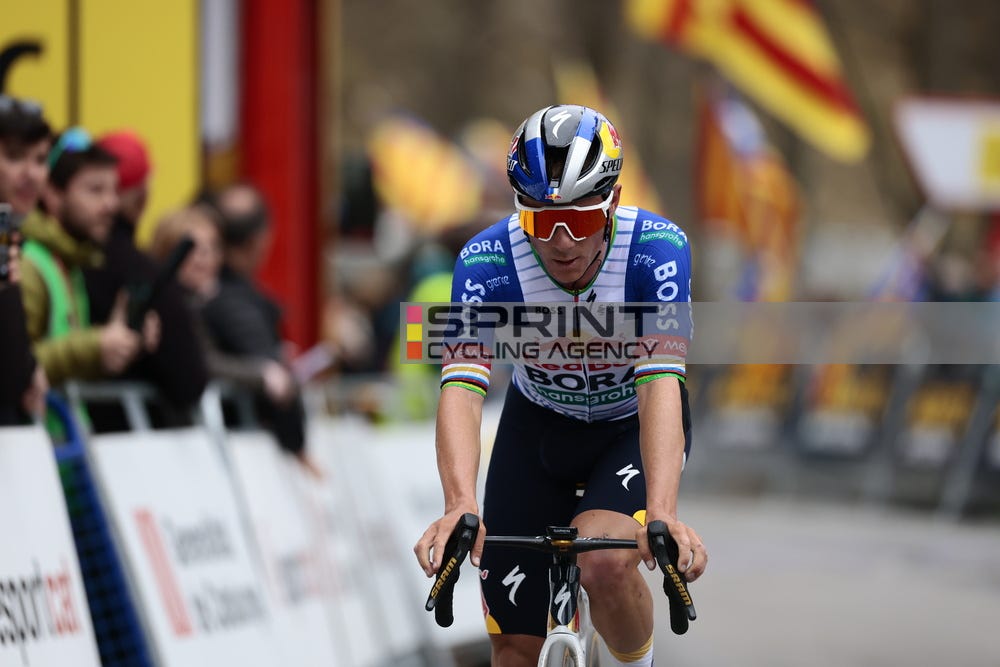 So even if this Evenepoel experiment fails, they still have quite a few cards to play. But could Remco succeed? He definitely has a team that can match Pogacar’s or MVDP’s, but does he have the form. At the UAE Tour and the Volta Catalunya his climbing performances were disappointing, but earlier in the year at the one-day races he looked like a different rider, dominating from start to finish.